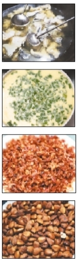 “白河鱼宴”是宝山镇山里人端出的一桌鲜美自然的菜,主角是白河里养殖的鲟鱼或草鱼,搭配上摊鸡蛋、白河虾、炒杏仁等当地土特菜品(图片自上而下)。