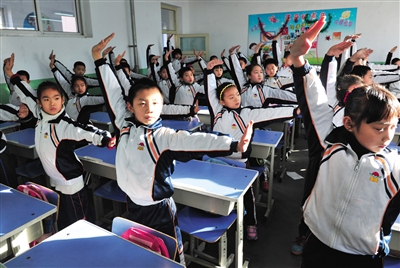 据新华社报道,由于霾天小学生不能正常户外运动,去年石家庄市光明路小学创编了一套室内武术健身操《武动光明》,其中有两个动作旨在预防雾霾对身体的影响,又称防雾霾操。