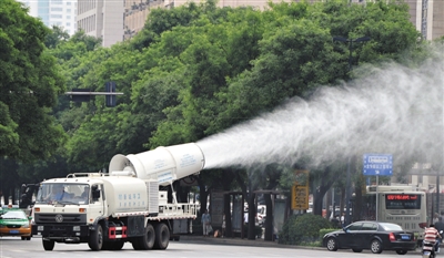 新京报讯 (记者金煜 实习生 范小洁)近日有媒体报道,兰州市购置了高射远程风送式喷雾机,可将自来水雾化并喷出600米远,有媒体称其“可有效对抗雾霾、粉尘等”。而西安市新城区市容园林局近日也新购多功能抑尘车投入使用,该“雾炮车”重10吨,能喷洒120米远、70米高的水雾,有喷雾降尘作用,媒体将之称为“治霾神器”。