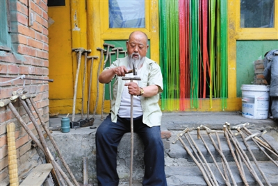 “横着的把手大概四寸长,使用的是花椒木,这种木质冬天不凉手;拐杖的棍身必须是荆轲木,因为不容易断裂,用起来又结实又安全。”做了几十年木工,老王对各类木头的使用早已熟悉。