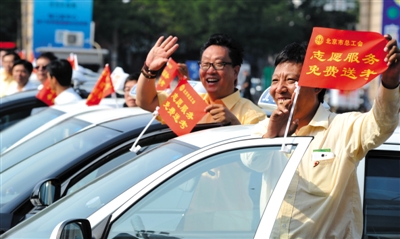 同时,服务总队启动2014年高考出租车送考生活动,免费为考生提供接送服务。北京市交通运输工会常务副主席唐军透露,目前已经有11家出租车公司的800余名驾驶员志愿者报名,的士也已到位至少800辆,这些车辆驾驶座位置将统一安放写有“志愿服务,免费送考”的小红旗。