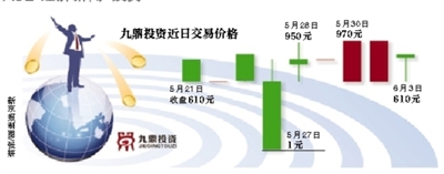 新京报讯 (记者金彧)作为首家登陆新三板的私募股权投资机构,九鼎投资于5月26日至28日股价巨幅波动,一天之内股价从850元跌至1元,被市场称为“蹦极”并质疑其是否违规。对此,昨日证监会新闻发言人邓舸表示,经查,上述交易的价格是由买卖双方自主协商确定,挂牌公司没有应披露而未披露的信息。