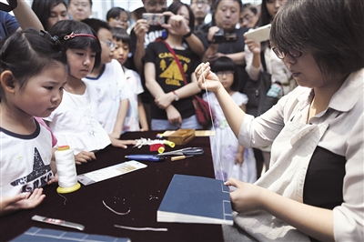 昨日,首图为已预约的市民传授线装书的制作技艺,并通过图片形式展示“中华古籍保护计划”的主要内容。国图则展出了1800余种研究“非遗”的专著,内容涉及传统美术、传统体育、传统医药等多个项目,地区范围涉及全国多个省市。