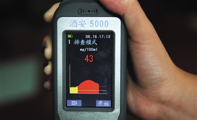 在饮用三扎啤酒5小时后,酒精测试仪显示刘女士体内酒精含量仍为43mg/100ml。