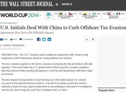 【事件】美财政部表示,已经与中国政府草签一份互惠协议。中国将把有关美国公民所有在华账户信息提交给美国国税局(IRS),而美国则会将中国公民在美国账户信息提供给中国政府。协议正式签署前还需审议协议细则。