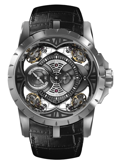 罗杰杜彼Excalibur Quatuor硅质腕表 世界首款配备四个摆轮游丝的硅质腕表,在高级钟表史上意义非凡。