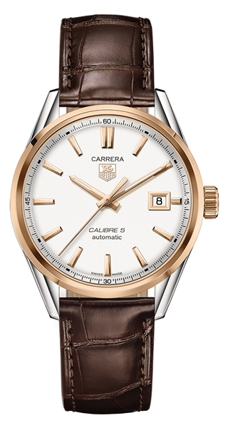泰格豪雅卡莱拉Calibre 5精钢及玫瑰金自动腕表 重新演绎卡莱拉系列的成功元素,29000元的价格极具吸引力。