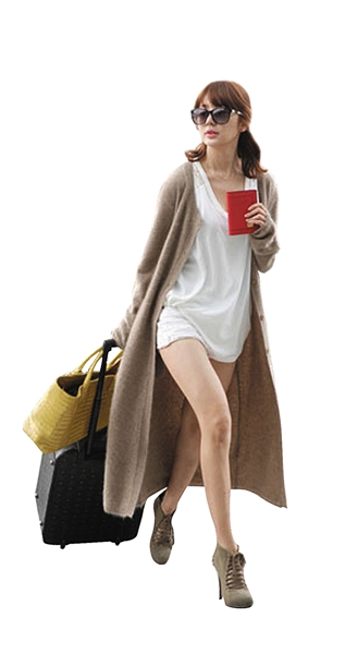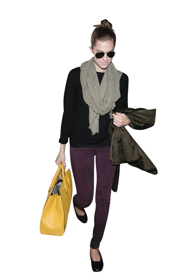 穿得再好,如果大包、小包挂满身也会严重影响造型,时尚编辑Eden尽量不随身携带大件箱包,用一个背包或大号手袋容纳所有东西,登机后随意扔在脚下,才对。