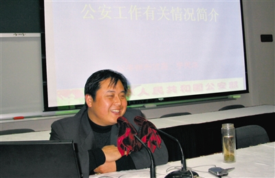 一次会议上,于天华向大家介绍公安相关情况。受访者供图