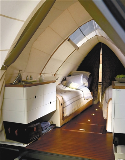 这款以悉尼歌剧院为设计灵感的房车由设计师Axel Enthoven打造,在造型新奇且美观的车顶之外,房车内部也可谓设备齐全、应有尽有:木质走廊、实木打造的桌椅和床、LED灯温控红酒柜、咖啡吧……此外当然也包括洗浴设备、陶瓷马桶和电暖气。其厨房可以提供热水,甚至还有容量为36L的冰箱。
