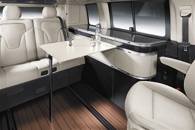 在最近举办的德国房车展上,奔驰发布了全新的Marco Polo(马可波罗)。该车以奔驰V级为原型打造,经过重度改装之后非常适合家庭出游。它配有一些简单的厨房用具,比如煤气炉以及电冰箱等;橱柜、衣柜以及简易折叠桌椅也能让家庭出行更加体面方便。车内采用纤维或皮质坐椅,后排坐椅还可以通过一键轻松转化成睡床,木地板与游艇上常见的样式相仿,颜色也以淡色为主,内部营造出的宽阔空间感成为一大亮点。此外,该车还采用了钢琴黑饰条以及LED内部灯组。