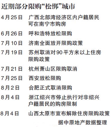 事实上,在楼市松绑的问题上,在过去一周,包括石家庄、杭州、温州、宁波、青岛、合肥等6个二、三线城市先后宣布取消限购,各地政府不再遮遮掩掩,而是赤裸裸地发文直接取消限购。