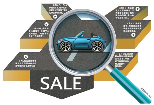 昨日还有消息称,奔驰公司上海办事处被发改委进行反垄断突击检查。另据报道,目前上海市发改委对克莱斯勒、湖北物价局对奥迪的调查已经接近尾声,两家企业都已查明确实存在垄断行为,近期将会受到相应处罚。业内人士认为,单纯下调零部件价格可能无法帮助车企应付这次反垄断风暴。