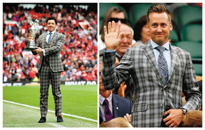 8月17日,当麦克罗伊手捧英国公开赛奖杯出现在英超曼联队主场——老特拉福德时(左),保尔特立即在推特上吐槽,小麦“借”了自己的礼服。原来早在今年夏天的温网赛场,保尔特曾穿了一身几乎一模一样的礼服。小麦也毫不示弱地回应:“这身礼服只有配上葡萄酒壶才叫帅!”