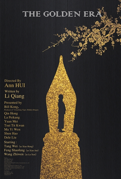 新京报讯 (记者安莹)国产浪漫电影《黄金时代》昨日在威尼斯电影节期间发布了5款国际版海报,延续之前“天地”、“笔锋”两版海报唯美大气的设计风格,用黑、白、青的纯色调勾勒出空旷的大时代背景。国际版海报包含美国、韩国、日本、中国台湾及香港共五个国家及地区海报,汤唯化身华语传奇女作家萧红,身影在飘渺的画面中若隐若现,或执笔凝思,或静静站立。如许鞍华所说,华语女星中唯有汤唯“身上有天才文人的气质”,海报中她每一个细微的神态都充盈着萧红的灵气。电影《黄金时代》被第71届威尼斯国际电影节选为闭幕式影片,英国媒体BBC更是称《黄金时代》是今年威尼斯电影节十大期待电影之一。