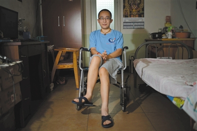 遗传性脊髓小脑共济失调症患者晓迪只能坐在轮椅上。