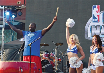 莱劲 在与球迷的互动环节中,昔日NBA“神射手”莱斯打起鼓来有模有样。