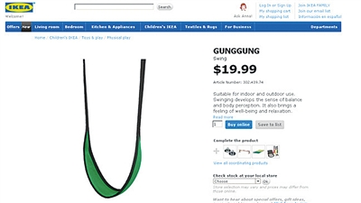 新京报记者在其召回公告的产品图片中看到,该款秋千可以通过两个固定装置悬挂在房顶之上,适合在室内使用。宜家收到的事故报告显示,GUNGGUNG摇摇秋千的悬挂配件未达到宜家品质要求,有造成严重伤害的风险。但记者并没有在宜家官方网站查到GUNGGUNG摇摇秋千的相关资料,无法获知更详细的产品材质及使用方法。