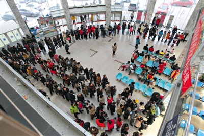 2012年,北京妇产医院门诊大厅排起的挂号长龙。北京首试公立医院开设“特许经营”,允许公立医院和社会资本合作。专家称,在目前市民看病扎堆大医院的情形下,市民可在更大范围内得到优质服务。资料图片/新京报记者 吴江 摄