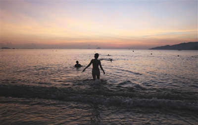 芽庄,日出前就去晨泳的当地人。