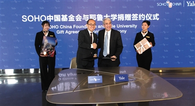 昨日上午,SOHO中国基金会与耶鲁大学签订了金额1000万美元的助学金协议,用于资助在耶鲁大学就读的中国学生。 SOHO中国基金会供图