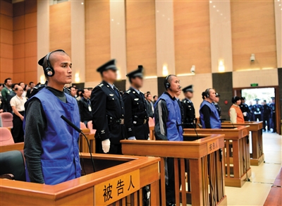 被告人在法庭上。昨日,云南省高级人民法院二审公开开庭审理昆明火车站“3·01”严重暴力恐怖犯罪案件。