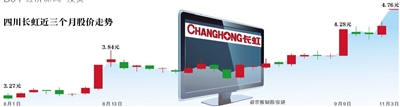 新京报讯 (记者李媛)11月3日,停牌一个多月的四川长虹复牌即一字涨停,报收4.76元。从消息面看,涨停主要受益于四川长虹对外宣布,拟定增40亿以整合军工资产、推动家电业务转型,并剥离亏损业务。