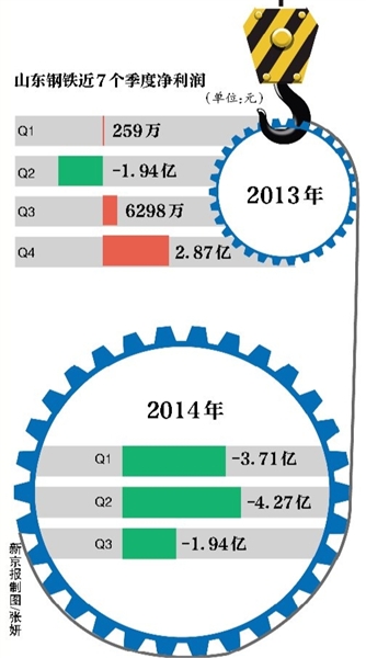 刚刚发布的山东钢铁三季报显示,今年1-9月,山东钢铁实现营业收入402.5亿元,同比下滑23.37%;同期公司净利润亏损9.91亿元,与去年同期亏损1.2亿相比大幅增亏。在A股33家上市钢企中,与重庆钢铁、八一钢铁一并成为亏损前三的企业,同时公司也领亏158家山东系上市公司。