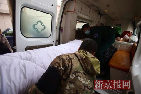 于尚清的儿子将父亲遗体抬上灵车。实习生 彭子洋 摄