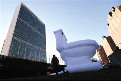 联合国门口现“超级马桶”