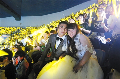有粉丝穿着婚纱去听李宇春的演唱会。