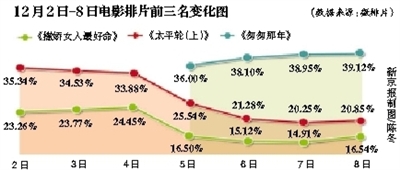 12月2日上映的《太平轮(上)》可谓进入贺岁档后最引人期待的重量级影片之一,重现了1949年有东方泰坦尼克号之称的大型客船太平轮号沉没的真实故事。从最早张震、宋慧乔的初选阵容未果到集结了黄晓明、章子怡、佟大为、长泽雅美的第二轮全明星阵容,其间有一年时间导演吴宇森也因不幸身患癌症专程前往美国接受治疗,熬过了整整六年艰难才终于得以重见天日。公映前三日以每天超过33%的全国排片率比第二名的《撒娇女人最好命》高出12%,但2510万、1720万、1450万的票房成绩实在不够理想,于是在《匆匆那年》上映后果断降低至21%上下,首周收获近1.08亿。无论内容或是形式,都遭到了不少诟病,“后期转制3D效果普通”,“分上下集近乎圈钱”,“《太平轮(上)》更像是《太平轮,还没上》”等恶评如潮。据观众刘先生反映,影片并没有想象中有震撼力,“战争场面吴导是发挥了他的正常水平,但情感线的铺陈不尽如人意,更郁闷的是,看完129分钟很想问太平轮在哪儿呢?”