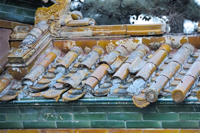 琉璃瓦缺损严重。