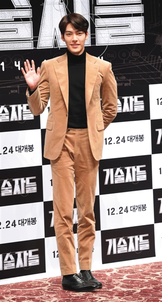 《高手们》讲述了志赫(金宇彬)、宗裴(李玹雨)、久仁(高昌锡)组成的“魔盗天团”做下韩国最大盗案:40分钟内,在全亚洲安保级别最高的仁川海关盗取1500亿现金赃款的故事。在首映红毯的现场,被称为“长腿男神”的金宇彬、片中的“萌弟”李玹雨两位男主角,以及为该片捧场的金秀贤、李敏镐都不约而同身穿长款风衣,秀出大长腿,这也是“继承者”与“星你”中的帅气“欧巴们”首次合体。