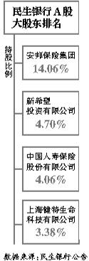 根据民生银行今年三季报显示,截至2014年9月30日,刘永好实际控制的新希望投资有限公司共持有民生银行A股16亿股,约占4.7%,为A股第一大股东;安邦财产保险有限公司为第六大股东,持有民生银行A股9.16亿股,占比2.69%。