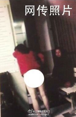 热传网帖称,“上海闸北区一红衣女子在警所裤子被扒,几个小时无人过问……红衣女子当天在上海闸北区政府门前跪求领导……突然冲出几个彪形大汉连扯带拉,下身裤子被扒。……照片是其7岁女儿在警所拍摄。”