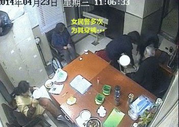 微博所附动态图能清楚看见一身穿红色外套女子躺在地下扭动乱蹬,裤子褪至脚处。旁边有女民警为其穿裤子,遭到阻碍,对面一男子拿着手机拍照。微博还将监控全景图与网上盛传的照片进行了对比。