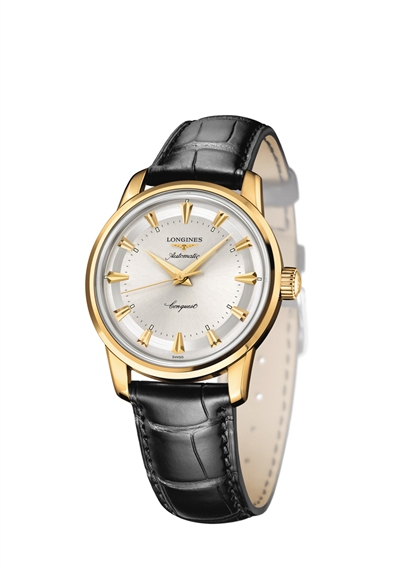 纤薄的表壳搭配简洁机镂刻花表盘,拥有采用硅质游丝的机械机芯。