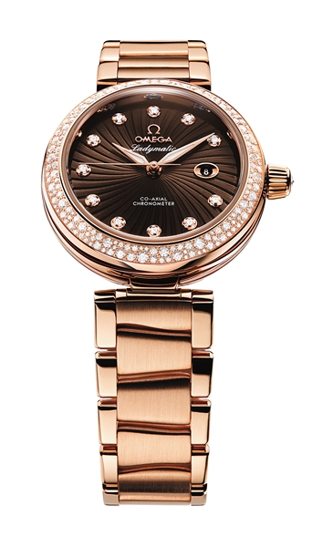 红金表壳与棕色表盘打造出沉稳的优雅气场,钻石镶嵌更添一份精致。