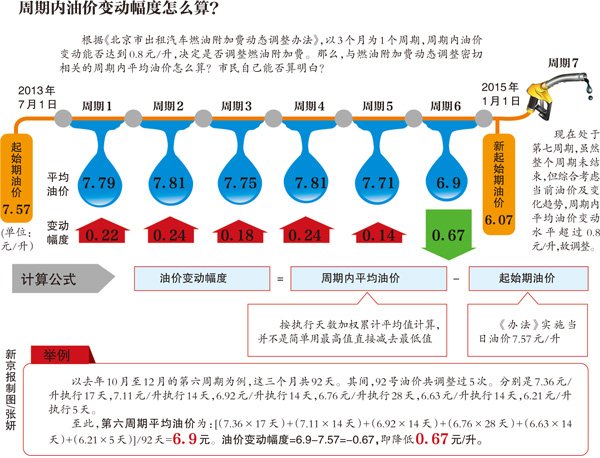 新的燃油附加费动态调整起始期油价按2015年1月15日燃油附加费调整日当日油价6.07元/升计算,新的测算周期自2015年1月15日起。