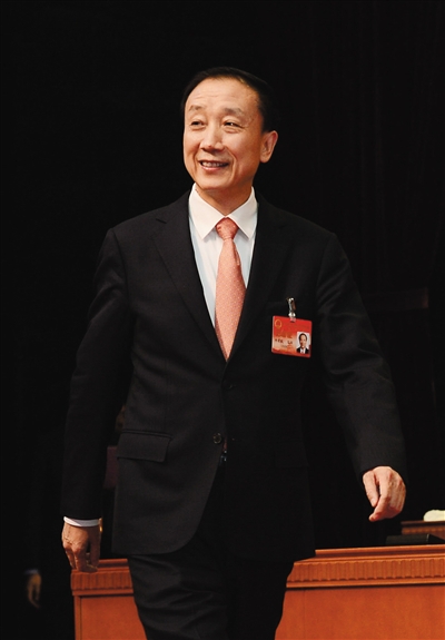 昨日,新当选的北京市人大常委会副主任牛有成,走上主席台与市人大代表们见面。新京报记者 尹亚飞 摄