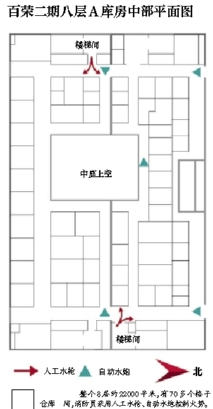 另外,大火长时间不灭也和建筑结构有关,建筑物内部是小型的仓库,在22000平米的面积内有70多个格子间。在灭火的时候,铁皮必须要破拆后水枪才能打到火点。