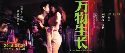 新京报讯 (记者安莹)由李玉执导,改编自冯唐同名小说,韩庚、范冰冰、齐溪、吴莫愁、沙溢等主演的电影《万物生长》昨日宣布提档于4月24日上映,并发布“立春”版海报和首支“放肆青春”版预告片。影片以韩庚与范冰冰“虎狼大战”般的爱情为核心,并辅以多段故事线,展现了一群20多岁的医学院男生蓬勃成长的放肆青春。影片制片人方励爆料,“别看李玉外表柔弱,其实内心有一股暴力。由她打造一部男性青春片绝对刺激。”