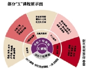 “X”是实现个性发展的特色化课程,既有必修也有选修。分为两部分: