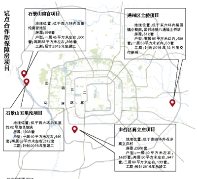 目前试点的合作型保障房,包括石景山区南宫、五里坨,丰台区高立庄、通州土桥这4个项目,可以提供约5000套房源。目前石景山区和丰台区已启动预公告程序,先调查被保障家庭的意向等。