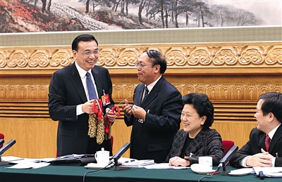 3月9日,面对参加黑龙江代表团审议的李克强总理,基层代表王波显得有点紧张。她的发言语速极快,快结束时,她说:“对不起,我太紧张了。”