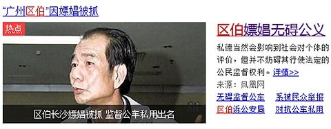 3月26日发生的嫖娼被抓事件让更多的人认识了区伯,并着实给了大家一个大大的感叹号。撇去“嫖娼”二字表面的一抹桃色,监督公权人士和嫖娼者之间的形象落差,巧妙的时间点更让民众有探究欲望。