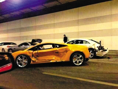 另据一目击者称,前夜的隧道撞车事件中,除撞击严重的法拉利和兰博基尼,还涉及多辆豪车。