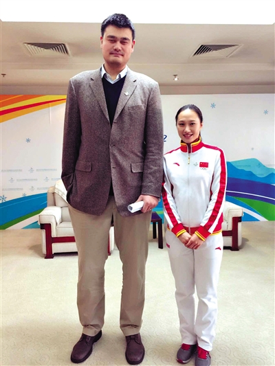 ◀同为申奥大使,张虹在姚明身边顿显“小鸟依人”。