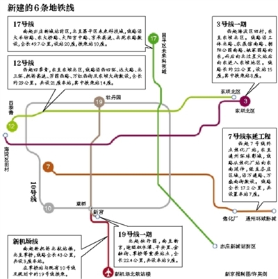 新京报讯 (记者郭超 实习生孙易恒)前天举行的市轨道交通建设动员大会上透露,北京市今年将开工建设新机场线、3号线一期、7号线东延、12号线、17号线、19号线一期等6条新地铁线,总里程183公里。